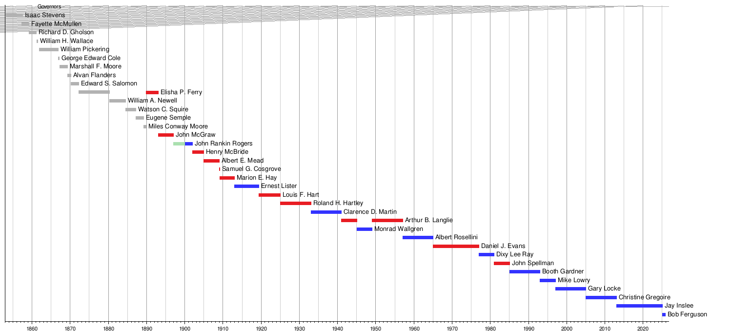 This timeline shows when each governor served in Washington, both for the territory and the state.