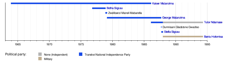 This timeline shows when each leader was in charge of Transkei.