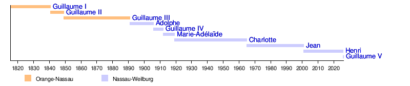 The first Grand Dukes of Luxembourg were also Kings of the Netherlands. They belonged to the House of Orange-Nassau.