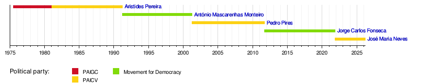Here is a list of all the people who have been president of Cape Verde since 1975. You will see their names, when they were elected, and how long they served.