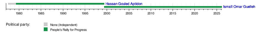 Here is a list of the people who have served as President of Djibouti. You can see their pictures, when they were born, and how long they were in office.
