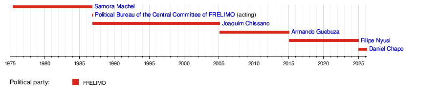 25 June 1975 | 19 October 1986 † | 11 years, 116 days | FRELIMO | 1977 | |