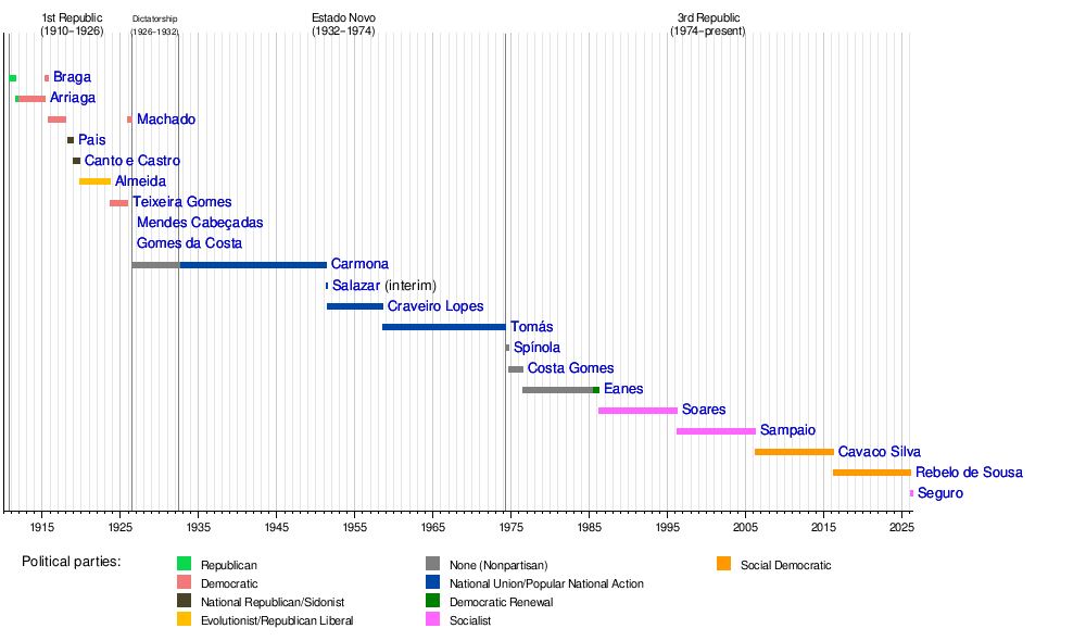 | 4 | António Ramalho Eanes | 9 years, 238 days | 2 | Nonpartisan → Democratic Renewal |