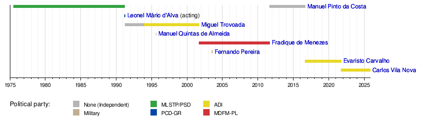— | 12 July 1975 | 4 March 1991 | 15 years, 235 days | MLSTP–PSD | |