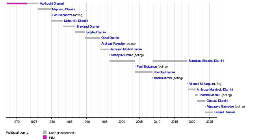 This timeline shows when each Prime Minister served in Eswatini. You can see how long each person held the position.
