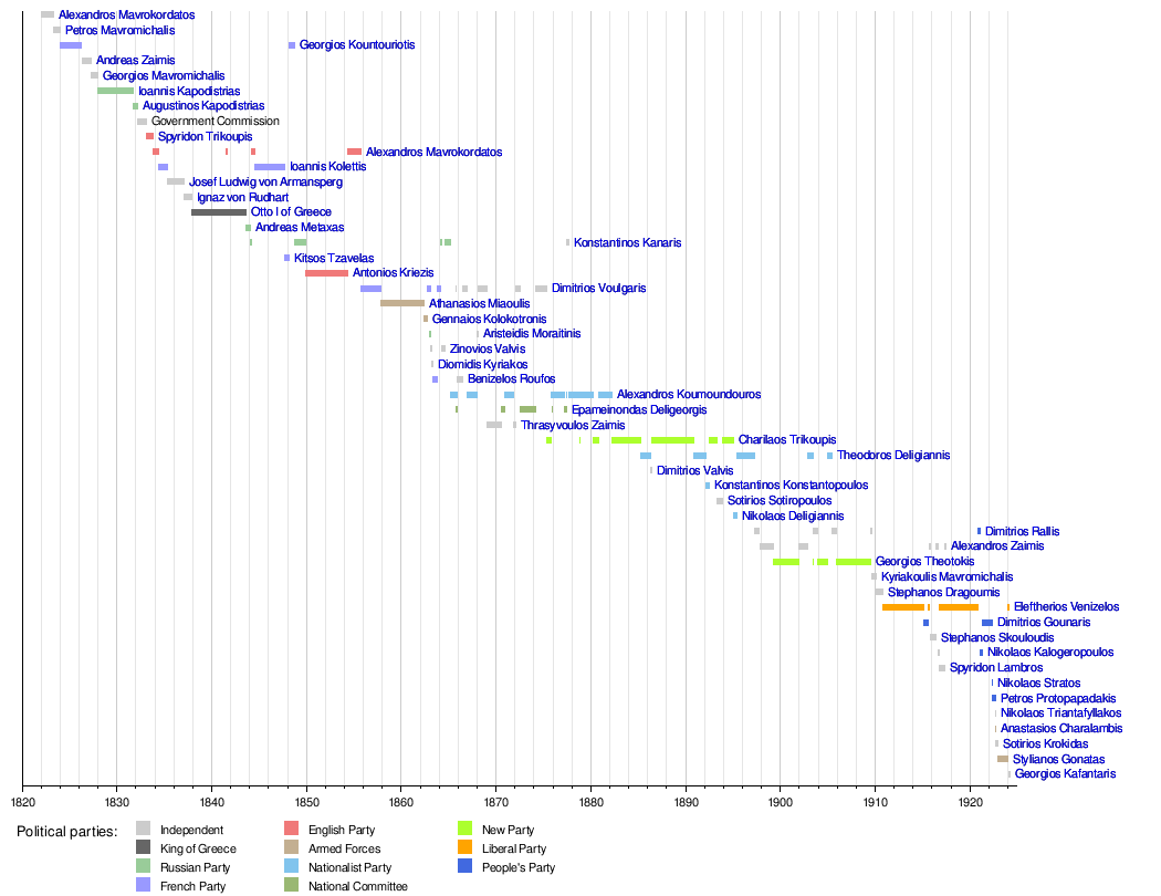 — | 24 June 1841 | 10 August 1841 | 47 days | English Party | He was the Chief Secretary of State. He was appointed while he was an ambassador, but he came back to Greece to form the government. | ||