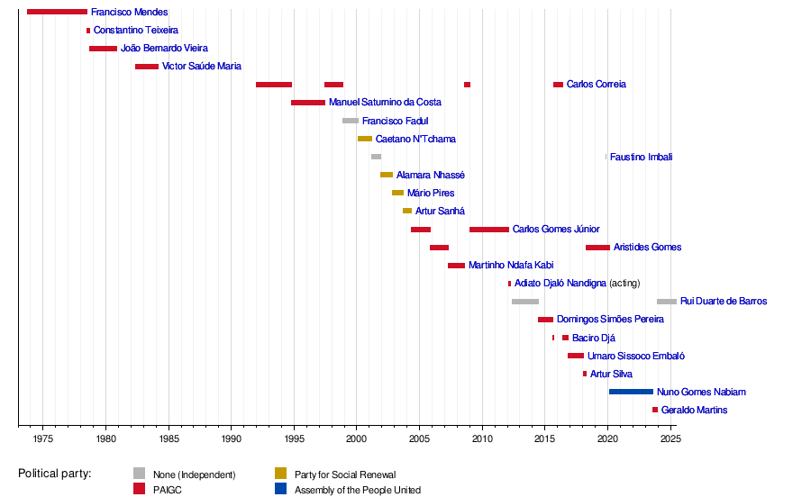 This section lists all the people who have been Prime Minister of Guinea-Bissau.