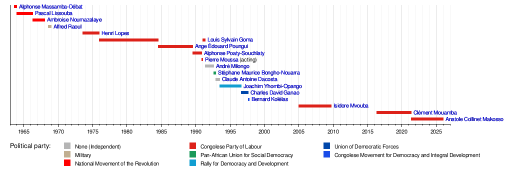 — | 24 December 1963 | 15 April 1966 | 2 years, 112 days | MNR | Alphonse Massamba-Débat (1963–1968) |