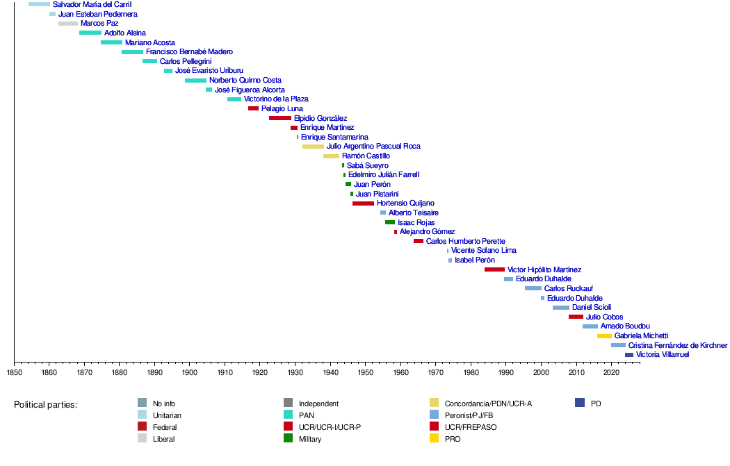5 March 1860 | 4 November 1861 | 1860 | Unitarian | Santiago Derqui | Became president after Santiago Derqui stepped down. | ||