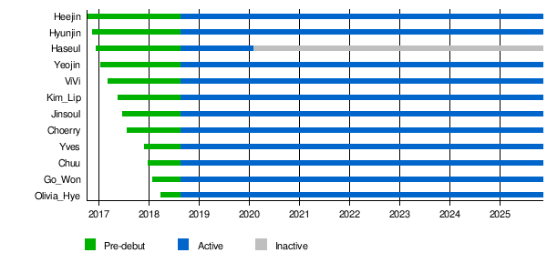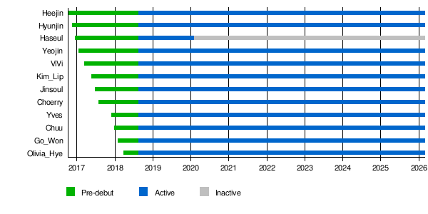 Between November 2017 and January 2018, new members Yves, Chuu, and Go Won released their solo songs. They also released a holiday song called "The Carol 2.0." In March 2018, the final member, Olivia Hye, released her solo album.