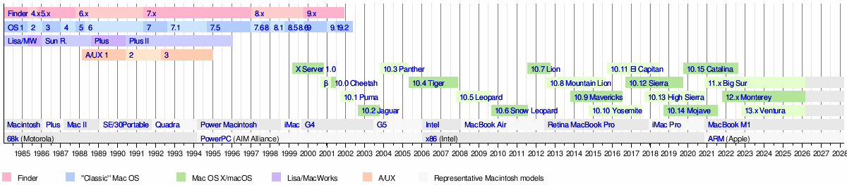 The history of macOS is all about how Apple's main computer operating system came to be. You might know it as macOS today, but it used to be called Mac OS X and then just OS X. This system was created to replace Apple's older "classic" Mac OS, which had been around since 1984.