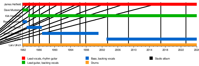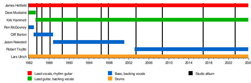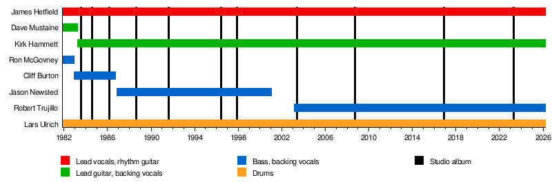 Metallica is an American heavy metal band. The group started in Los Angeles in 1981. It was formed by singer and guitarist James Hetfield and drummer Lars Ulrich. For most of its career, the band has been based in San Francisco.