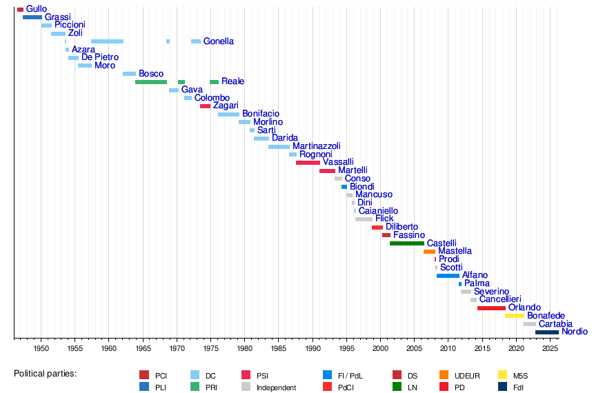 This section lists the people who have served as Italy's Minister of Justice. The role has changed slightly over time, from the Kingdom of Italy to the modern Italian Republic.
