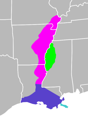 The term "Mississippi Embayment" can sometimes be used in a more specific way. It often refers to the part of the plain on the western side of the river. This section goes through eastern Arkansas, southeastern Missouri, westernmost Tennessee, westernmost Kentucky, and southernmost Illinois.