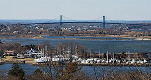The bridge is close to the East Bay Bikeway, a bike path that goes from Providence to Bristol. The state of Rhode Island considers the bridge a continuation of this bike route. However, it doesn't have a special lane for bikes, so signs ask drivers to "share the road." There are plans to build a separate bike path that will cross the bridge and continue to Newport.