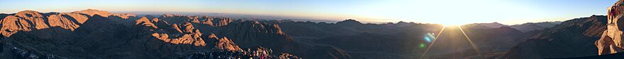 Mount Sinai, also known as Jabal Musa (Arabic: جَبَل مُوسَى, lit. 'Mountain of Moses'), is a famous mountain in Egypt. It is located on the Sinai Peninsula. This mountain is very important to three major world religions: Judaism, Christianity, and Islam. People believe it is the place where the prophet Moses received the Ten Commandments from God.