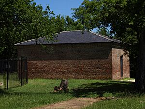 The Powder Magazine is an old building from the American Civil War era. It was used to store gunpowder safely. Located in Powder Magazine Park, this building is being restored to preserve its history.