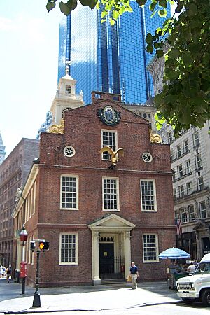 The Old State House at Washington and State Streets in Downtown is a National Historic Landmark, listed on October 15, 1966. It's the oldest public building in Boston and was the center of colonial government. The Boston Massacre happened right outside its doors.