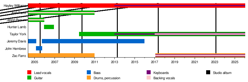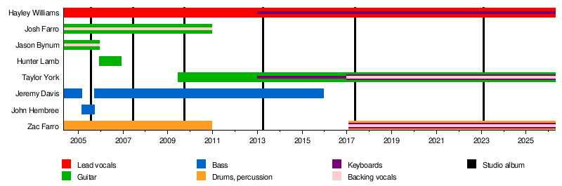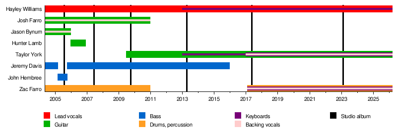 Paramore is a popular American rock band that started in Franklin, Tennessee, in 2004. Since 2017, the band has three main members: Hayley Williams (lead singer), Taylor York (lead guitarist), and Zac Farro (drummer). Hayley and Zac were part of the band from the very beginning. Taylor, who was a friend of the original members, joined in 2007. Paramore has had some changes in its members over the years, but Hayley Williams has always been there.