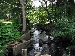 The Paskamanset River starts in a special place called the Acushnet cedar swamp in New Bedford. It also begins in Sassaquin Pond, which is sometimes called Myles Pond.