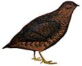 The Phasianidae is a family of birds that includes well-known birds like pheasants, partridges, and junglefowl (which are wild relatives of the chicken). These birds usually live on the ground. They come in many different sizes but are generally plump with broad, short wings. Many male birds in this family have a spur on their legs, which is a sharp, bony growth.