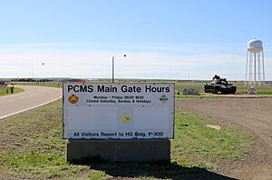 The site has a main area for soldiers, a place to load and unload trains, helicopter landing pads, and an airstrip. PCMS holds two big military exercises each year. During these exercises, about 5,000 soldiers, 300 heavy tracked vehicles (like tanks), and 400 wheeled vehicles use the vast wilderness. These exercises are intense and can last for a month.