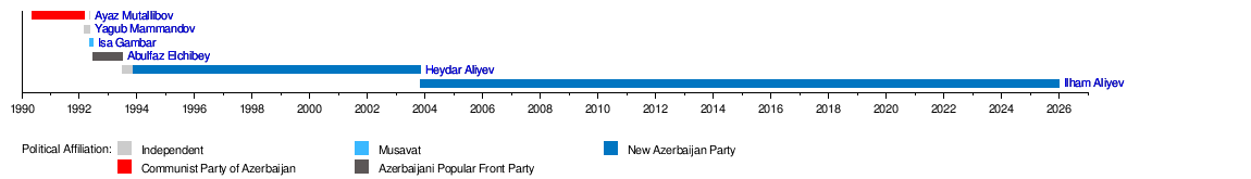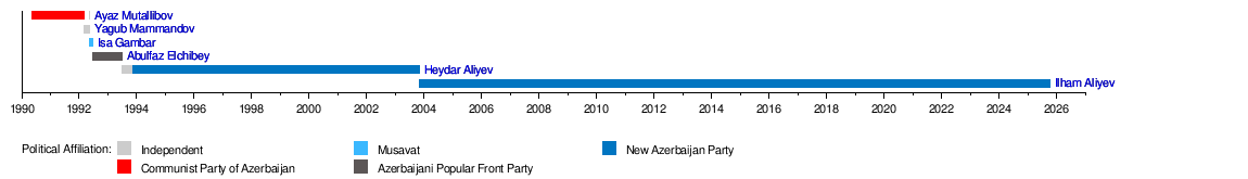 17 June 1992 | 24 June 1993 | 1 year, 7 days | Azerbaijani Popular Front Party | 2. Elçibəy I | 1992 | ||