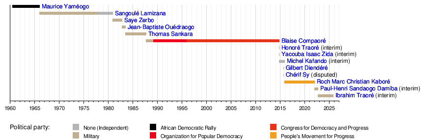 Here is a list of the people who have served as president of Upper Volta and Burkina Faso.
