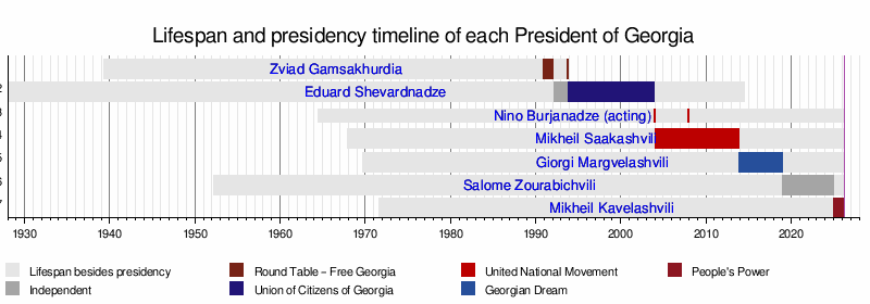 On December 14, 2024, the Georgian Electoral Assembly chose Mikheil Kavelashvili as the new president. He officially started his job on December 29, 2024. This was the first time Georgia's president was chosen indirectly, meaning not by a direct vote from all citizens. This change happened because of new rules added to the Constitution in 2017. Some political groups and experts in Georgia, along with parts of the international community, believe that Kavelashvili's presidency is not fully legitimate. They think that Salome Zourabichvili is still the rightful president.