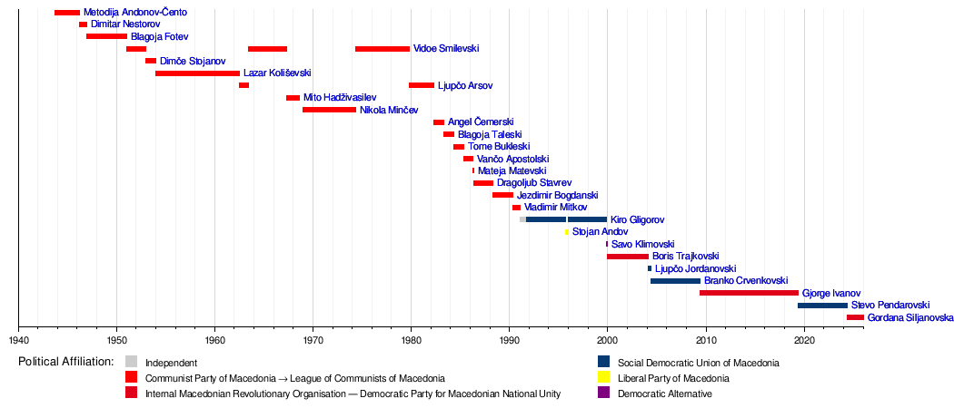 12 May 2024 | Incumbent | 1 year, 232 days | VMRO-DPMNE | 2024 | |