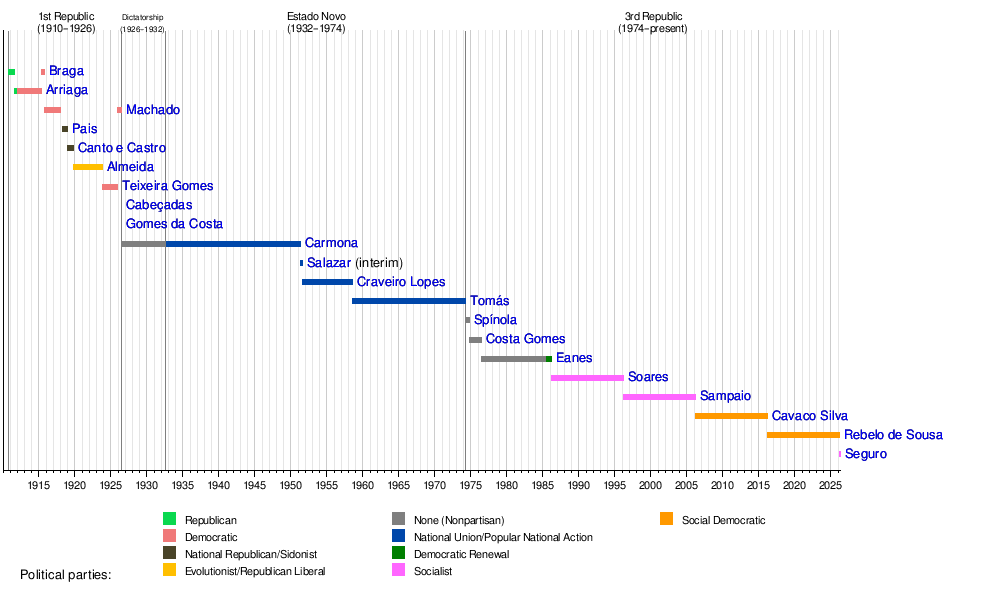 Long ago, the President's powers were very different. After a big change in 1974, Portugal became a democracy. Since then, the President's role has been focused on protecting the country's rules and freedoms.