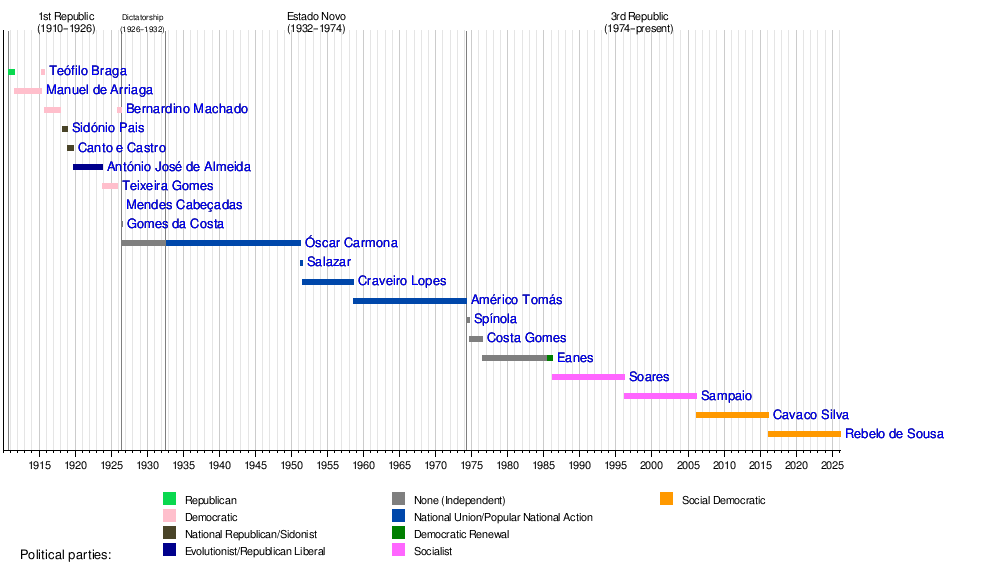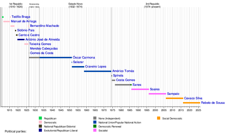 Before 1974, the president's powers changed a lot. Some presidents were very powerful, almost like dictators. Others had very little real power. During a time called the Estado Novo, the president was supposed to have a lot of power. But in reality, the prime minister held the most control.