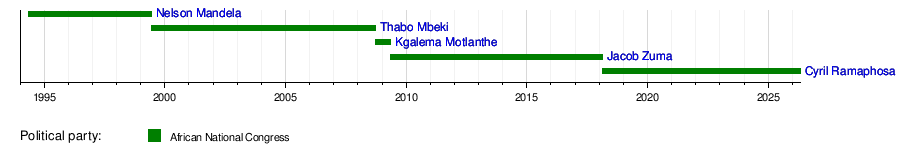 8 years, 72 days | 26th | ANC | Ramaphosa I | ||