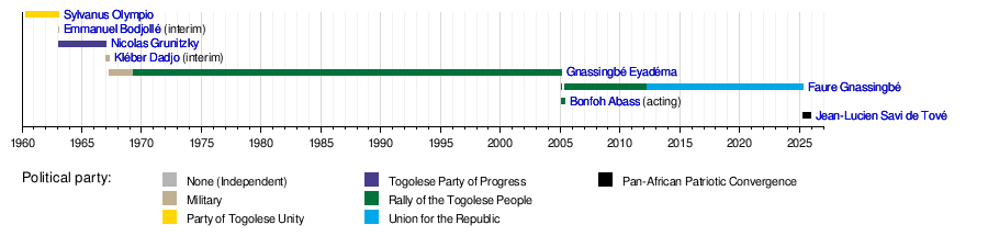 2025 | 3 May 2025 | Incumbent | 224 days | CPP | Gnassingbé |