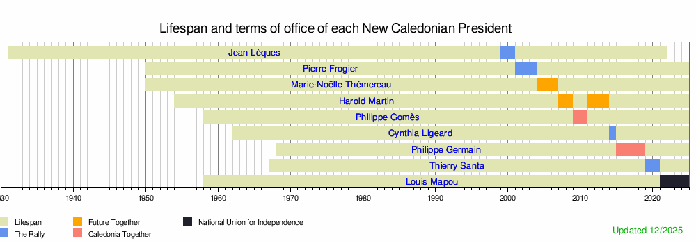 The president of the Government of New Caledonia is a very important leader. This job was created in 1999. It came about after an important agreement. This agreement was called the Nouméa Accord. It was signed in 1998.