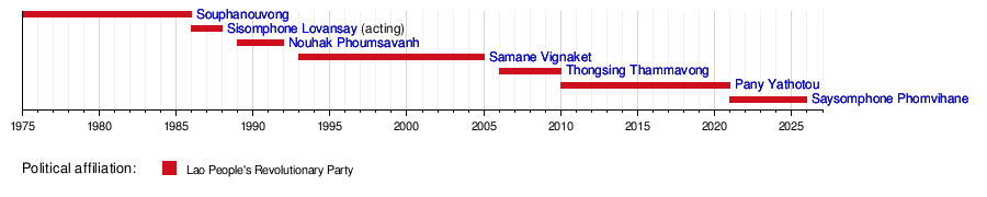 2 December 1975 | 25 November 1986 | 10 years, 358 days | Lao People's Revolutionary Party | |||