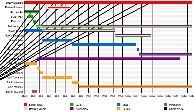 In 2011, the band toured to celebrate the 20th anniversary of Screamadelica. After the tour, bassist Mani left to rejoin his old band, The Stone Roses. Simone Butler joined as the new bassist in 2012.