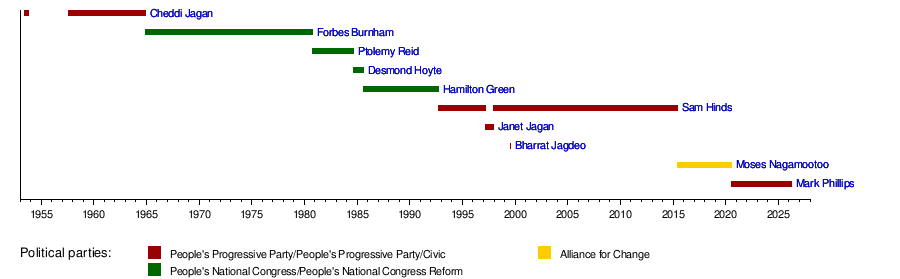 Leaders of Guyana: Chief Ministers, Premiers, and Prime Ministers