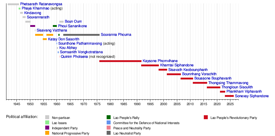 4 years, 50 days | Non-partisan | King Sisavang Vong (1904–1945) |