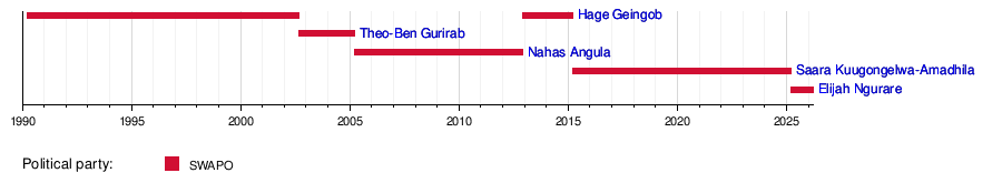 2024 | 21 March 2025 | Incumbent | 359 days | SWAPO | |