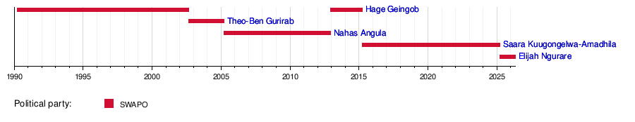 2024 | 21 March 2025 | Incumbent | 1 year, 35 days | SWAPO | |