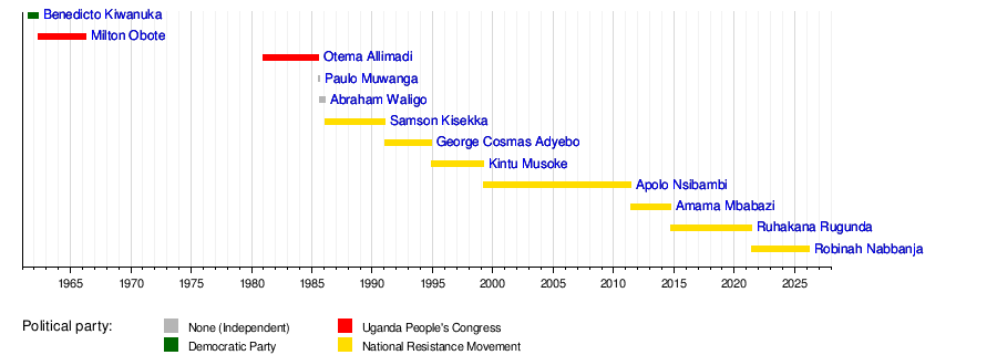 Here is a list of the people who have served as Prime Minister of Uganda. You can see which political party they belonged to.