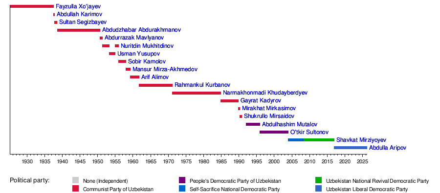 - Fayzulla Xoʻjayev (February 17, 1925 – June 17, 1937)