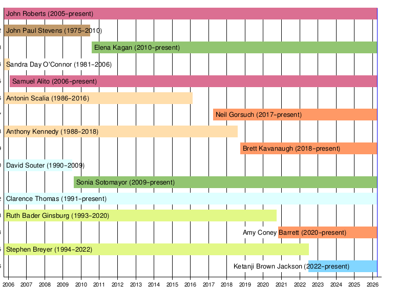Over the years, other justices have retired or passed away, and new ones have joined.