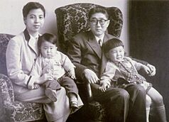 Abe's maternal grandfather, Nobusuke Kishi, was a significant figure in Japanese politics. He was involved in the government during World War II. After the war, he was held as a suspected war criminal by the US military, but he was later released. Kishi helped create the Liberal Democratic Party (LDP) and became Prime Minister of Japan from 1957 to 1960. Abe looked up to his grandfather and shared many of his strong beliefs about Japan's role in the world. His mother, Yōko Abe, was a talented calligrapher.