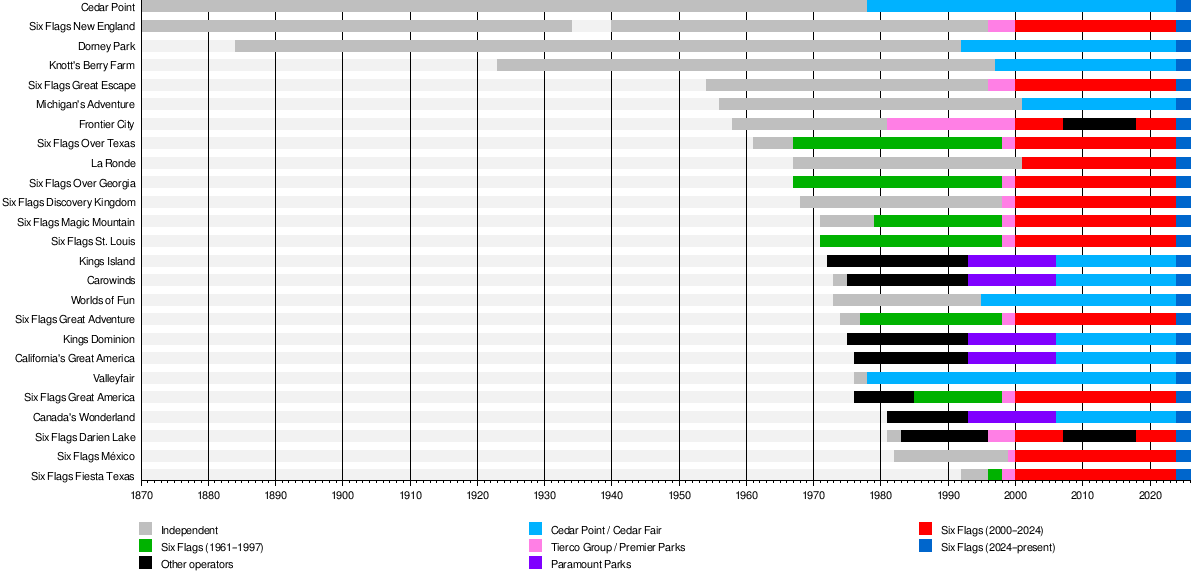 Cedar Fair also has a long and interesting history. It grew to become another major player in the amusement park world. You can learn more about their story in the main article about Cedar Fair.