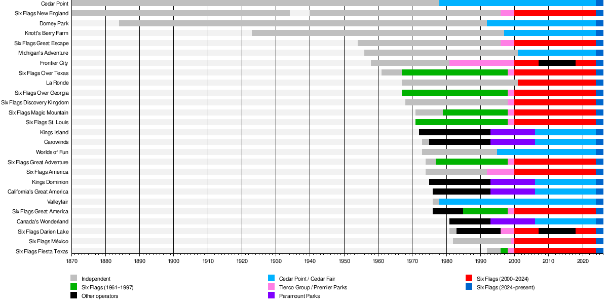 Former Cedar Fair parks Former Six Flags (1961–2024) parks
