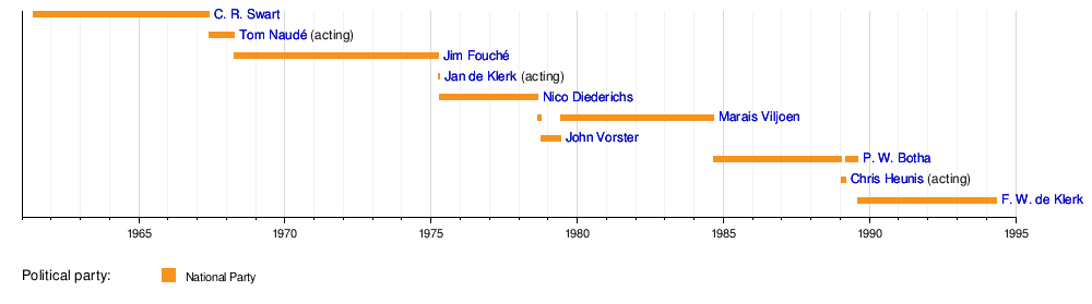 In reality, the job of State President was often given to retired National Party ministers. This was similar to how the Governor-General's job had been since 1948. Because of this, all State Presidents from 1961 to 1984 were white, Afrikaner men who were over 60 years old.