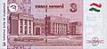 | 1 diram | 100 × 60 mm | Brown | Sadriddin Ayni Theatre and Opera House | Pamir Mountains | Two mountains over rectangle | 1999 | 2000 | ||