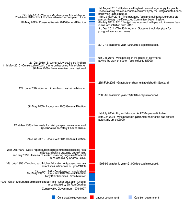 In July 2015, the government announced that tuition fees, which had been £9,000 since 2012, would increase with inflation from the 2017-18 school year. They also announced that maintenance grants would be stopped from September 2016. These changes were not voted on by all politicians in Parliament. Instead, they were approved by a smaller committee, which meant they automatically became law.